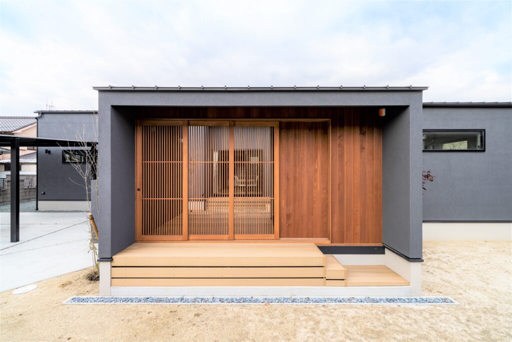 さらに、庇(ひさし)の深い軒や縁側、ウッドデッキを取り入れると、見た目に奥行きが出るだけでなく、屋外と室内のつながりも豊かになります。伝統的な構造を活かしながら、日々の暮らしにゆとりを感じられる空間がつくれるのは和モダンならではの魅力です。