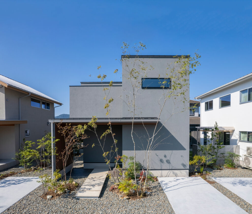 さらに、見落としがちなのが外構や植栽とのバランスです。建物本体だけでデザインを完結させようとすると、どこか無機質な印象になりかねません。シンボルツリーや低木を適所に配置するだけでも、外観に立体感と奥行きが生まれ、全体の調和がとれた印象になります。