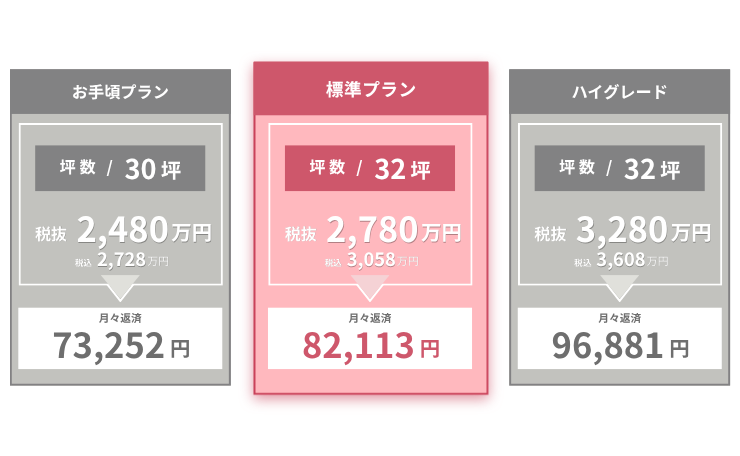 家族の人数や敷地に合わせたプランバリエーションを多数ご紹介しています。