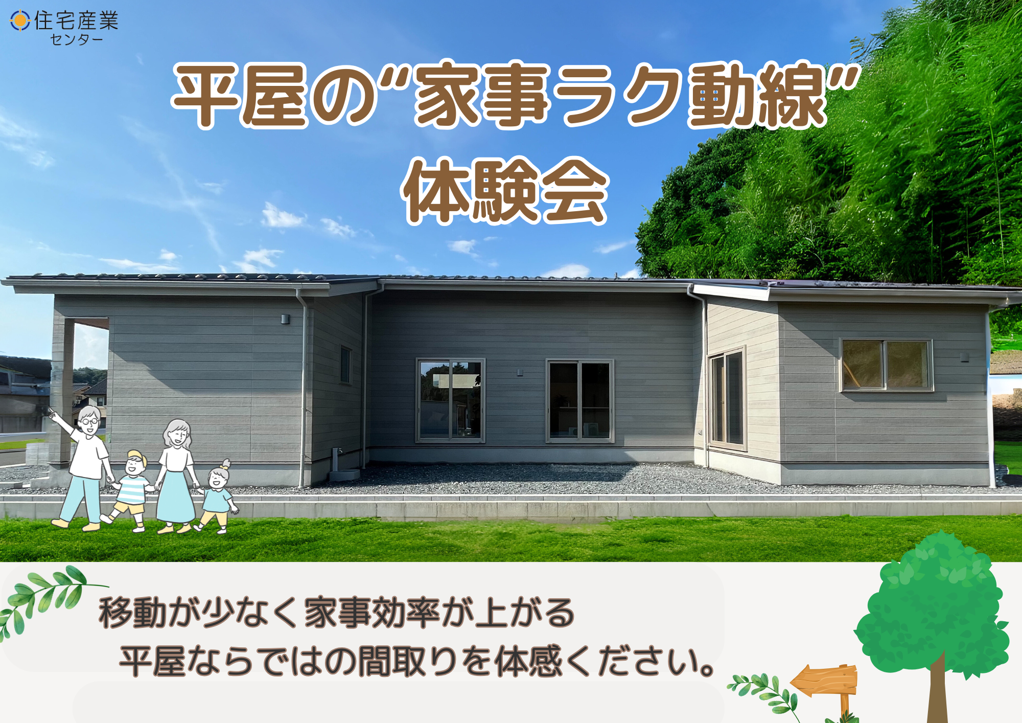 【当日予約可】ママが嬉しい間取りの工夫が全部入った平屋モデルで暮らす体験&相談会家事ストレスが半分に!? 平屋の家事ラク動線体験会