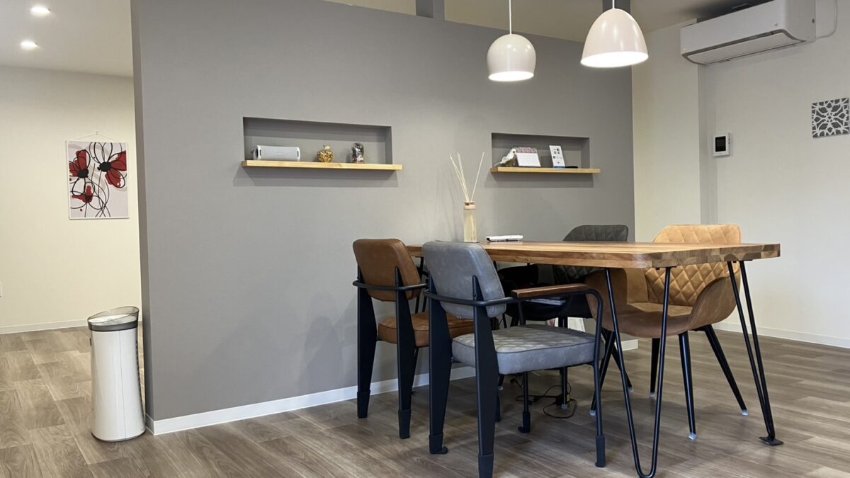 既存倉庫を店舗に。サロンリノベ実例(津山市・D様) before 広いものの、空間の使い分けが難しかった。 after メインスペースに間仕切りを設け、広さはそのままに、プライバシーを確保。 実例概要 リフォーム内容親の会社が所有する倉庫の一部(1階)を、プライベートサロンとしてリノベーション 金額約1,000万円 築年数築55年 工期約2ヶ月 動機以前は別の場所でサロンを営業していましたが、個室やバックヤード、水回り設備の整った、より使いやすい店舗にしたいと考えるように。 コストを抑えるため、空きスペースを活用した店舗リノベーションを選択しました。 建物は養父の所有で、住宅産業センターとは親の代からの付き合いがあり、安心して相談・依頼することができました。 この実例のようなリフォームをご検討中の方へ無料相談はこちら所要時間:約1分(送信で完了)